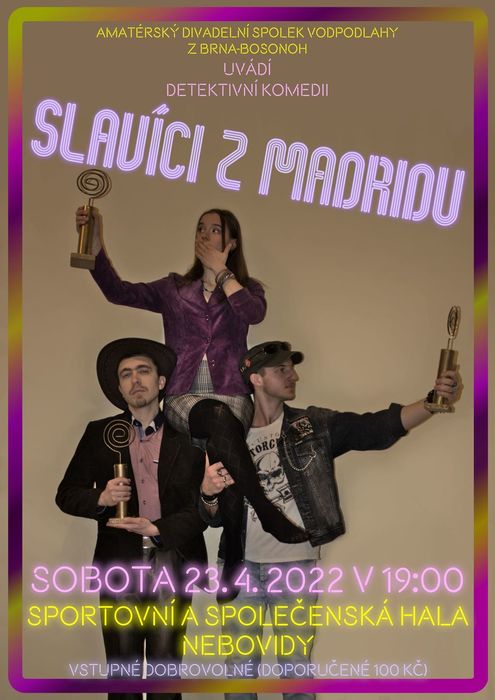 Úvod > Život v obci > Sportovní a společenská hala > Fotogalerie z akcí > Divadelní představení Slavíci z Madridu